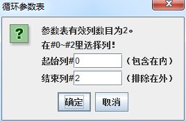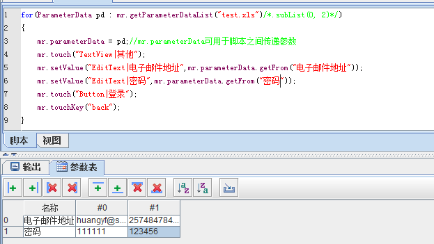 他会从参数表中提取信息,注意小括号中的文字,起始列是包含在内的,而结束列被排除在外。点击确定后脚本编辑器中会添加如下循环参数表代码,这是一个循环结构的空壳,它和参数表关联,参数表中的数据都是保存在和脚本同名的xls表中的。