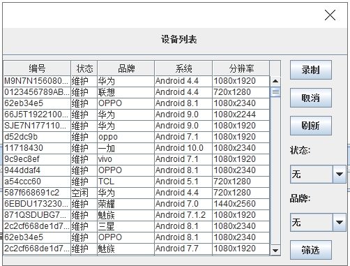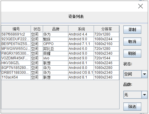 | 描述: | 点击工具栏录制按钮,筛选出状态空闲的手机 |