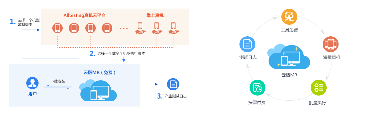 实现自动化脚本录制并执行,接入大量移动设备,你只需通过云版MR来测。