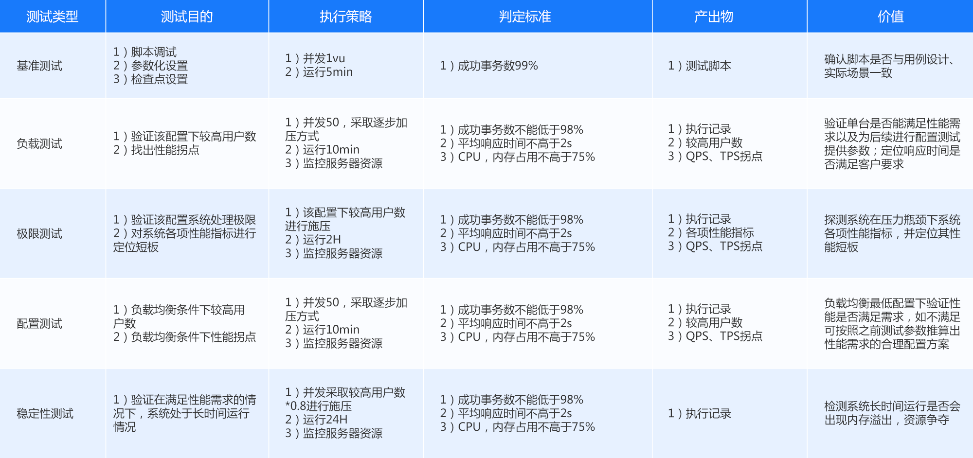 对每个测试阶段准入准出定义,包含工作内容、测试产物、阶段目标、时间计划等进行规定、根据不同的测试目标可进行调整