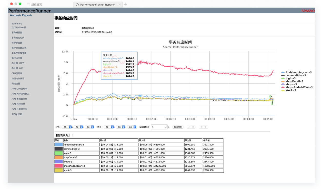 Used to analyze the speed and variability of response times for each transaction.