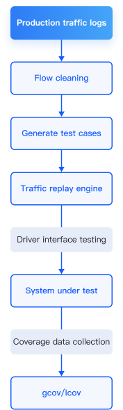 Technical Implementation: Simulate user requests using the TestOne API testing framework, supporting concurrency control and timing adjustments. Core Capabilities: Request Distribution: Replay traffic to the system under test at full scale or sampled ratios. Context Management: Handle dependency chains (e.g., automatic retrieval of login session tokens). Exception Handling: Detect timeouts, service outages, etc., and flag failed test cases accordingly.