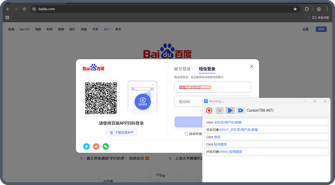 Fully supports mainstream browsers such as Chrome, 360, and Edge, enabling one-click automation. Easily perform actions like clicking, typing, and scrolling, with intelligent handling of pop-ups and hover windows to efficiently execute end-to-end testing.
